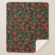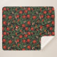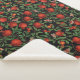 Granatäpfel mit üppigen Blätter und reichhaltigen roten Früchten erstrecken sich über einen schwarzen Hintergrund. Eine sekundäre Ebene verblasst subtil, wodurch Tiefe hinzugefügt wird. Traditionell auf Papier mit Markern gemalt, werden die Elemente gescannt und in Fotoshop zu einem Muster zusammengesetzt.