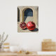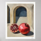 Ein Stillleben aus ganzen und geschnittenen Granatäpfeln, die in einem architektonischen Rahmen mit runden Bögen platziert sind. Die Komposition kombiniert traditionelle Fruchtskizzen mit mittelmeerinspirierten Innenraumformen, wobei Struktur, Licht und Kontrast betont werden.