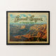 Das Grand Canyon Nationalpark im Vintage-Stil besticht durch die großen Schluchten mit dem Colorado River, der sich durchschlängelt und einen puffblauen Wolkenhimmel.