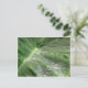 Grande feuille verte avec pluie fraîche qui s'allonge dans les plis. Image capturée à Victoria, C.-B. Carte postale appropriée pour envoyer une simple note à n'importe qui.