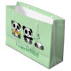 Grand Sac Cadeau 3 mignons petits pandas sur vert