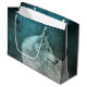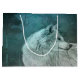 Sac cadeau avec une photo d'un magnifique loup gris et velouté. Dans l'arrière - plan est une forêt sombre avec des arbres. Vibe mystique magique.