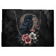 Un majestueux corbeau noir s'installe fièrement au milieu d'un amas de fleurs délicates. Le corbeau, avec son bec pointu et son oeil rouge perçant, dégage une aura mystérieuse. Ses plumes sont minutieusement détaillées dans un style réaliste, mettant en évidence la texture et la brillance de son plumage. Autour se déroule un harmonieux jeu de fleurs délicates dans les tons doux rose et blanc. Les pétales des fleurs sont doux et délicats, ils semblent presque chuchoter dans la lumière douce. Cette composition contrastée entre le corbeau puissant et les fleurs fragiles crée un équilibre fascinant entre la force et la grâce.