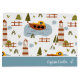 Ajoutez une touche nautique à la fête d'anniversaire ou au baby shower de votre petit garçon avec cet adorable motif de bateau sur mesure grand sac cadeau. Le sac cadeau contient des phares, des bateaux, et un endroit pour le texte Capitaine et prénom de votre enfant. Le texte personnalisé se trouve au-dessus d'un arrière - plan bleu avec une ancre blanche. Ajoute à cela un cadeau d'anniversaire, de Noël ou autre, surtout pour les jeunes garçons !