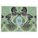 Regal Zebra élevé sur les pattes postérieures flanquant un monogramme personnalisable, ajoutez le vôtre, ou laissez vide. Photo sur un arrière - plan vert pâle avec motif starburst