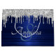 Sacoche d'anniversaire chic moderne pour une fille d'anniversaire spéciale. Parfait pour Sweet 16, 21ème anniversaire, 40 et fabuleux et plus ! Ce design est composé d'un arrière - plan bleu métallique, d'une texture argentée brillante de parties scintillant et d'un script de calligraphie. Personnalisez avec un nom et votre message.