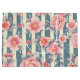Grand sac cadeau avec une belle motif avec de jolies fleurs roses disposées sur un motif rayé composé de rayures bleues et crème.