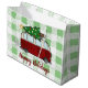 Passez un Noël fantastique avec ces merveilleux grands sacs-cadeaux. Un adorable camping-car arborant un arbre de Noël orne chaque côté un motif rustique blanc et vert clair en plaid. Passez de bonnes vacances !