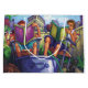 Art de la lecture estivale de Traci Van Wagoner présente un garçon et une fille assis dans un jardin urbain, les pieds dans un bain cool, en train de boire de la limonade et de lire des livres. Un chat et un chien s'allongent à leurs pieds sur le pont de bois. Parfait pour les amateurs de livres et de bibliophiles de tous âges.