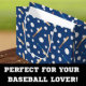 Ce amusant motif de baseball et de chauve-souris montre l'équipement sportif dans un motif bleu foncé. Il s'ajoute à un cadeau d'anniversaire, de Noël ou autre cadeau de vacances d'un petit garçon ou d'une petite fille.