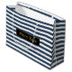 Ce "Custom Name Blue/White Stripes Large Gift Bag" présente des rayures bleues et blanches et peut être personnalisé avec le nom du destinataire. Faites vos cadeaux encore plus mémorables avec ce sac cadeau élégant et personnalisable. commandez dès aujourd'hui!