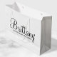 Sac cadeau de proposition Bridesmaid moderne noir et blanc avec nom de femme d'honneur personnalisée en calligraphie moderne style de police avec titre dans le style de police sans serif moderne. Aussi parfait pour femme de ménage d'honneur, fille de fleurs, groomsman, meilleur homme et porte-bague.