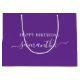 Grand Sac Cadeau Royal Purple White Élégant Script Nom de signature