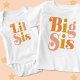Un t-shirt de grande soeur de style rétro pour votre fille. Une excellente façon de faire une annonce de bébé ! Le body "Petite Soeur" assorti est disponible.