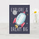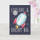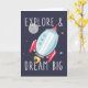 Colorful retro inspiré vaisseau spatial, lune et étoiles design par Shelby Allison avec les mots "explorer et rêver grand".
