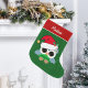 Ce joli stock personnalisé de Noël de hibou présente un bel oiseau avec de mignons yeux Kawaii sur le vert et le rouge des vacances.