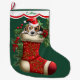 Cette réserve de vacances a l'image d'un adorable chiot Beagle marron et blanc qui sort d'un bas rouge orné. L'image est entourée de baies saintes, de baies rouges et de fleurs de poinsettia, et est placée sur un arrière - plan vert de Noël. Une arête blanche bordée de rouge tient votre nom customisé en haut. L'arrière du bas est identique à l'avant.
