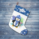 Grande Chaussette De Noël Sucre de canne de pingouin bleu mignon