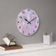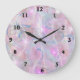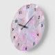 Grande horloge murale dans un design abstrait rose avec tourbillons et faux éclat. Les couleurs du bleu, du vert et de la pêche sont également ajoutées, pour un joli design d'horloge.