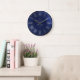 Elegant personnalizable clock with scales of justice symbole on dark blue background.