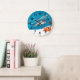 A aquatic graphic illustration of a cute shark on a wall clock. ©2015charmainepaulson