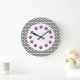 Pretty printed purple gemstone bling wall clock with black white and gray zigzag chevron on the clock face in this decorative wall decor for your kitchen, dining room, dorm room, or any room in your house you want to add some color and character. Designed for ladies or teenage girls who like to make a splash in a modern with their decor.