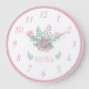 Custom s'appelle Floral Wreath Girl Wall Clock. Great personalized vend à la fille. Sweet floral wreath and custom name Mild, calming pastel colors : dusty purple, aqua et peach.