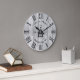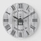 Nom de famille personnalisé, ville, état et année établi Rustic Modern Wall horloge dans un style de ferme branché avec cadran d'horloge romain, illustration de grange, et noir et blanc en toile de fond en bois / shiplap conception. Un cadeau idéal pour les jeunes mariés, les mariages ou les grands-parents, ou pour un cadeau de bienvenue dans votre cabine, votre chalet ou votre maison de campagne.