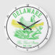 Display your Delaware state pride, with this charming wall clock. It features the First State heritage, showcasing a vibrant chicken anchor wheat, design. An established 1787 gift, celebrating colonial history. This Delaware wall clock, adds timeless historical charm to any home. Perfect for any one.