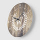 Pretty farmhouse light wood planks background with white roman numerals, white laurels, et your white personalized monogram letter.