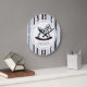 Personnalized rocking Horse Wall Clock in blue brown and white.