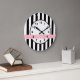 Grande Horloge Ronde Noir blanc bande rose Nom du ruban Monogramme