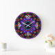 Un kaléidoscope coloré ou un motif mandala avec douze rayons, points ou passerelles. Un vrai mandala de l'histoire a quatre portes. La motif a des tons bleu et violet forts, avec des couleurs feu rouge et orange, et des accents d'aquamarine, jaune, rose et vert. Il y a quatre grands nombres blancs avec l'ombre noire sur cette horloge. Le kaléidoscope à douze points est un design intrigant. Le nombre douze a des liens avec l'énergie sacrée dans de nombreuses religions. Dans la spiritualité, douze peuvent représenter l'équilibre, l'achèvement, les subtilités et l'assistance des anges ou des personnages divins. La forme ronde ou la roue est associée au progrès, aux cycles de vie, à la rotation des saisons, à l'intégrité, à l'infini. Le bleu peut représenter l'honnêteté, l'intégrité, la magie de la nuit, Yin énergie, élément Eau, vérité dans les rêves, profondeur de l'âme. Le violet est une couleur royale et peut signifier indépendance, confiance, richesse et succès. Les rouges et les oranges sont généralement associés au feu et au soleil, à la personnalité chaleureuse, au mouvement positif, à la passion et à la réalisation de buts. Le jaune est une couleur d'optimisme et de bonheur. J'espère que vous apprécierez ce beau travail. Design original par M Sylvia Chaume, Canada. Bonne bénédiction !