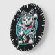 Grande Horloge Ronde Robot Cyberpunk Maneki Neko Chat Lucky, Argent