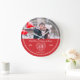 Simple contour coeur pierre effet ligne graphique rouge rubis et blanc ajouter votre propre photo 40ème Mariage Anniversaire horloge. Customisez avec le nom de votre couple de 40e anniversaire, l'année de son mariage et l'année de son anniversaire, et ajoutez une photo de paysage de votre couple d'anniversaire. Le 40e anniversaire du mariage est associé au rubis en pierre de gemme et le coeur symbolise l'amour. Graphiques et design par Sarah Trett pour www.mylittleeden.com et www.mylittleedenweddings.com sur zazzle.