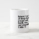 Jumbo Certains jours, une tasse de joe de taille régulière ne le fera pas. Quand vous avez besoin d'une dose de caféine en plus, utilisez votre tasse XL de Zazzle. Peut contenir jusqu'à 591 ml. Idéal pour des soupes, céréales, glaces et du chili aussi ! Cette tasse géante à une anse en forme de C pour une utilisation confortable. Dimensions : Hauteur : 4,5" Diamètre : 3,9" Capacité : 20 onces Micro-ondes et lave-vaisselle sans danger Construction céramique forte Satisfait ou dépasse les exigences de la FDA en matière de salubrité des aliments et des boissons Conseil du concepteur : Pour assurer l’impression de haute qualité, veuillez noter que l’aire de conception personnalisable de ce produit mesure 4" de haut x 10,5" de large