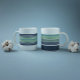 Fun rétro/mod navy bleu, turquoise, et vert rayé tasse est une façon amusante de profiter de votre café, thé, ou d'autres boissons dans ce style les années 70 et 80s rétro mod. C'est une pop de couleur vive mais apaisante qui se marie bien avec de nombreux styles de design.