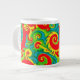 Cette tasse à café a un design psychédélique coloré et lumineux.