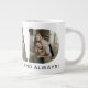 DAD 20 oz. jumbo mug personalized with 3 of your favorite photos which are displayed in the shape of the word DAD with the words "Love you forever and always!" Perfect for your dad!