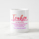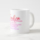 Jumbo Certains jours, une tasse de joe de taille régulière ne le fera pas. Quand vous avez besoin d'une dose de caféine en plus, utilisez votre tasse XL de Zazzle. Peut contenir jusqu'à 591 ml. Idéal pour des soupes, céréales, glaces et du chili aussi ! Cette tasse géante à une anse en forme de C pour une utilisation confortable. Dimensions : Hauteur : 4,5" Diamètre : 3,9" Capacité : 20 onces Micro-ondes et lave-vaisselle sans danger Construction céramique forte Satisfait ou dépasse les exigences de la FDA en matière de salubrité des aliments et des boissons Conseil du concepteur : Pour assurer l’impression de haute qualité, veuillez noter que l’aire de conception personnalisable de ce produit mesure 4" de haut x 10,5" de large