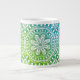 Généreusement dimensionnée, cette tasse de 20 oz est recouverte d'un beau style mandala dans les tons vert citron et bleu. Art original de Carol Kristensen.