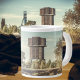 "La nature prend le relais des humains", tasse, avec une photo de style vintage de mine de charbon abandonnée. Ajoutez une touche de wabi sabi à votre décor ou trouvez un cadeau insolite pour ceux qui aiment le grunge ou le style steampunk.