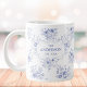 Grande Tasse Monogrammed Classic Blue Flowers Floral Pattern