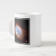 Cette comparaison côte à côte montre des observations de la Nebula de ceinture du Sud dans la lumière proche infrarouge, à gauche, et de la lumière du milieu infrarouge, à droite, à partir du télescope spatial James Webb. Cette scène a été créée par une étoile naine blanche - les restes d'une étoile comme notre Soleil après qu'elle ait versé ses couches extérieures et cessé de brûler du combustible par fusion nucléaire. Ces couches extérieures forment maintenant les coquilles éjectées tout au long de cette vue. Dans l'image de la caméra proche infrarouge (NIRCam), le nain blanc apparaît en bas à gauche de l'étoile centrale lumineuse, partiellement cachée par un pic de diffraction. La même étoile apparaît - mais plus brillante, plus grande et plus redoutable - sur l'image Mid-Infrared Instrument (MIRI). Cette étoile naine blanche est enveloppée d'épaisses couches de poussière, ce qui la rend plus grande. L'étoile plus brillante dans les deux images n'a pas encore dissipé ses couches. Il orbite étroitement le nain blanc plus sombre, aidant à distribuer ce qu'il a éjecté. Pendant des milliers d'années et avant qu'il ne devienne un nain blanc, l'étoile éjecte périodiquement la masse - les coquilles visibles du matériel. Comme si on le répétait, il s'est contracté, chauffé, et puis, incapable de pousser plus de matière, pulsé. Le matériel stellaire a été envoyé dans toutes les directions et fourni les ingrédients pour ce paysage asymétrique. Aujourd'hui, le nain blanc chauffe le gaz dans les régions intérieures, qui apparaissent bleues à gauche et rouges à droite. Les deux étoiles éclairent les régions extérieures, en orange et bleu respectivement. Les images sont très différentes parce que NIRCam et MIRI recueillent différentes longueurs d'onde de lumière. NIRCam observe la lumière proche infrarouge, qui est plus proche des longueurs d'onde visibles que nos yeux détectent. MIRI va plus loin dans l'infrarouge, en prenant des longueurs d'onde de l'infrarouge moyen. La deuxième étoile apparaît plus clairement dans l'image de MIRI, parce que cet instrument peut voir la poussière brillante autour, en la mettant plus clairement en vue. Les étoiles, et leurs couches de lumière, volent plus d'attention dans l'image NIRCam, tandis que la poussière joue le rôle principal dans l'image MIRI, en particulier la poussière qui est illuminée. Passez dans la région circulaire au centre et vous verrez une ceinture de matériau instable et asymétrique. C'est là que se rencontrent deux bols qui composent la nébuleuse. (Dans cette perspective, la nébuleuse est à un angle de 40 degrés.) La lumière qui traverse la poussière orange dans l'image NIRCam, qui ressemble à des projecteurs, disparaît à des longueurs d'onde infrarouges plus longues dans l'image MIRI. Dans la lumière proche infrarouge, les étoiles ont des pointes de diffraction plus proéminentes parce qu'elles sont si brillantes à ces longueurs d'onde. Dans la lumière infrarouge moyen, les pointes de diffraction apparaissent également autour des étoiles, mais elles sont de plus en plus faibles.