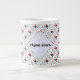 La tasse à café géante au drapeau sud-coréen contient les mots, REPUBLIQUE DE CORÉE, ci-dessous. Montré sur une diagonale et carrelé, il y a une fractale de carrés blancs, grognement, avec une place pour votre nom. Créez un look personnalisé pour vous-même ou un cadeau customisé. Le nom apparaît sur trois côtés de la tasse.