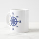 Mug géant dans une conception rose compas 8 points avec un léger effet surélevé, 3d - bleu marine / Indigo