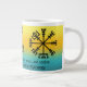 Buvez votre boisson de cette tasse jumbo. Serait également idéal pour une grande portion de soupe ou de piment ! Un arrière - plan jaune, or et turquoise avec trois symboles Viking populaires et une citation de la mythologie normande couvrent l'extérieur de cette tasse. Serait le cadeau parfait pour l'amant viking dans votre vie.
