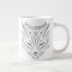 Une grande tasse avec une illustration artistique de la tête d'un loup et un texte disant "WOLVERINE". Bien que le design soit entièrement en gris, vous pouvez changer la couleur du loup et de chaque oeil ainsi que le contenu textuel et la couleur et la police dans la modification à l'aide de l'outil de conception.