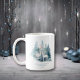 Weißes Hirsch mit Goldgeweih im Vordergrund zur Aquarellfarbe, aquamariner Kiefernwald. "Erstjährige Großeltern - Namensvorlage - Jahresvorlage" unter aquamarin.