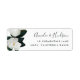 Chic florale Rücksendeadressen-Aufkleber umrahmen Ihren Namen und Ihre Adresse mit einem Paar weißer magnolischer Blume und üppig dunkelgrüne Blätter. Entworfen, um unsere Grandiflora Event-Briefmarkensammlung zu ergänzen.